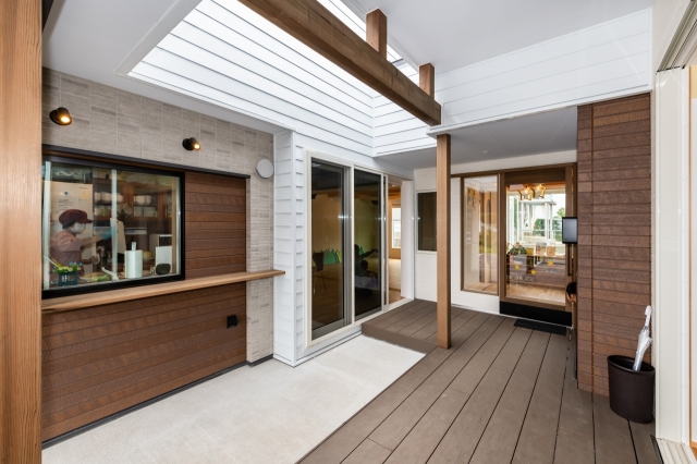 プランのポイントは中庭テラスです。これを挟んで、保育エリアと地域開放エリア、厨房エリアを計画しています。園児のアプローチと兼用することで、子供たちと地域の建物利用者の活動が混ざったり、朝の登園時に調理中の厨房からいい匂いがしたり・・子供たちの生活を+αで彩る空間となりました。