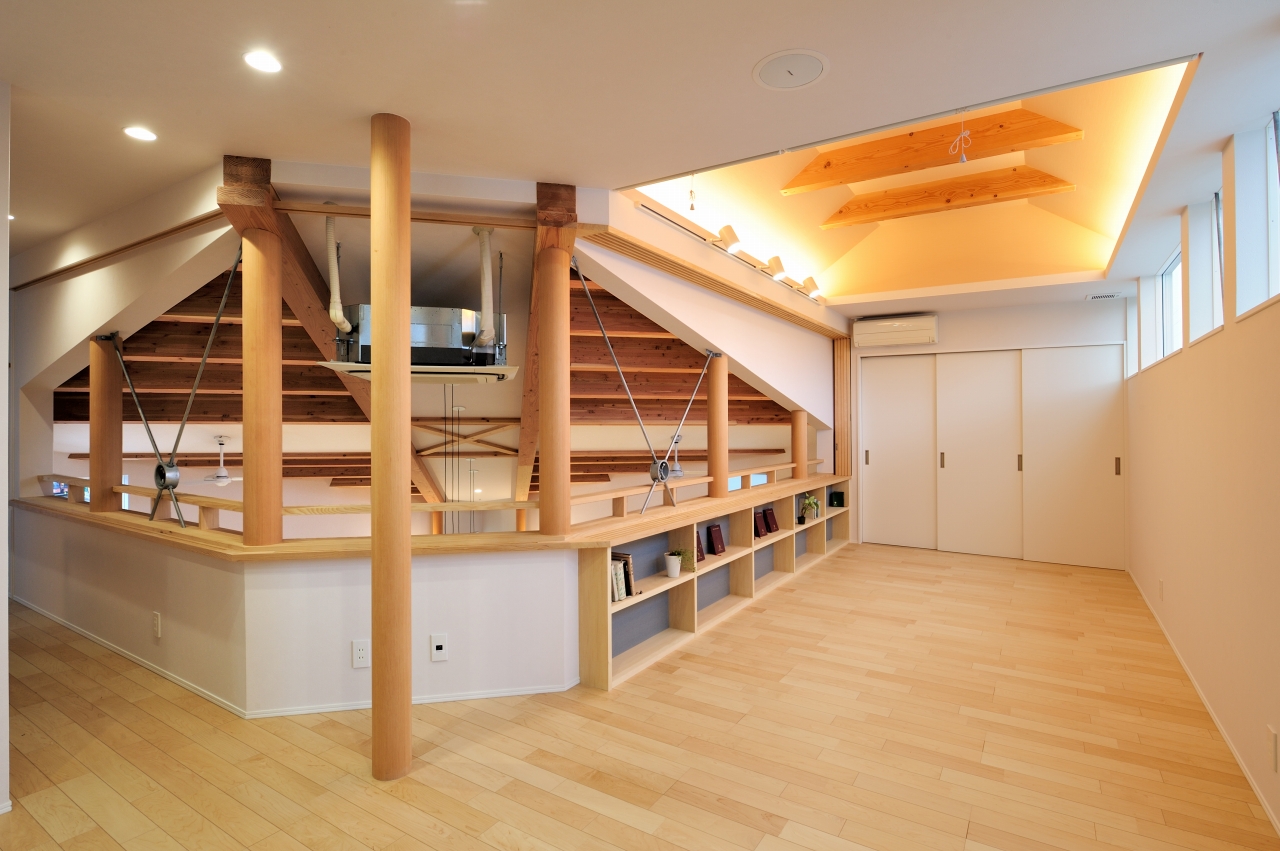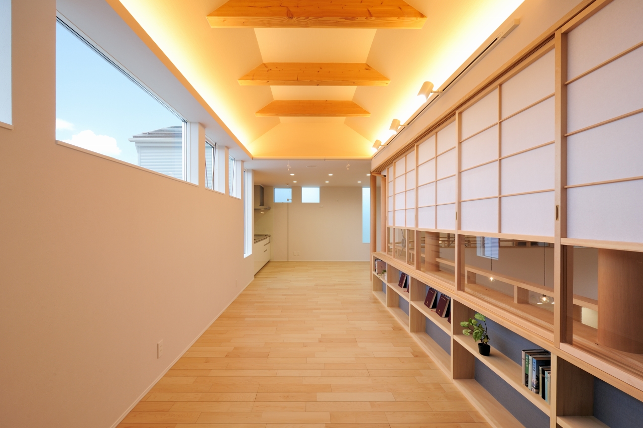 狭小敷地の中、小を大に見せる対比錯覚効果を取り入れた。