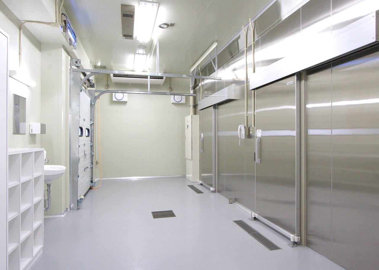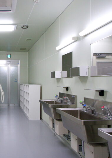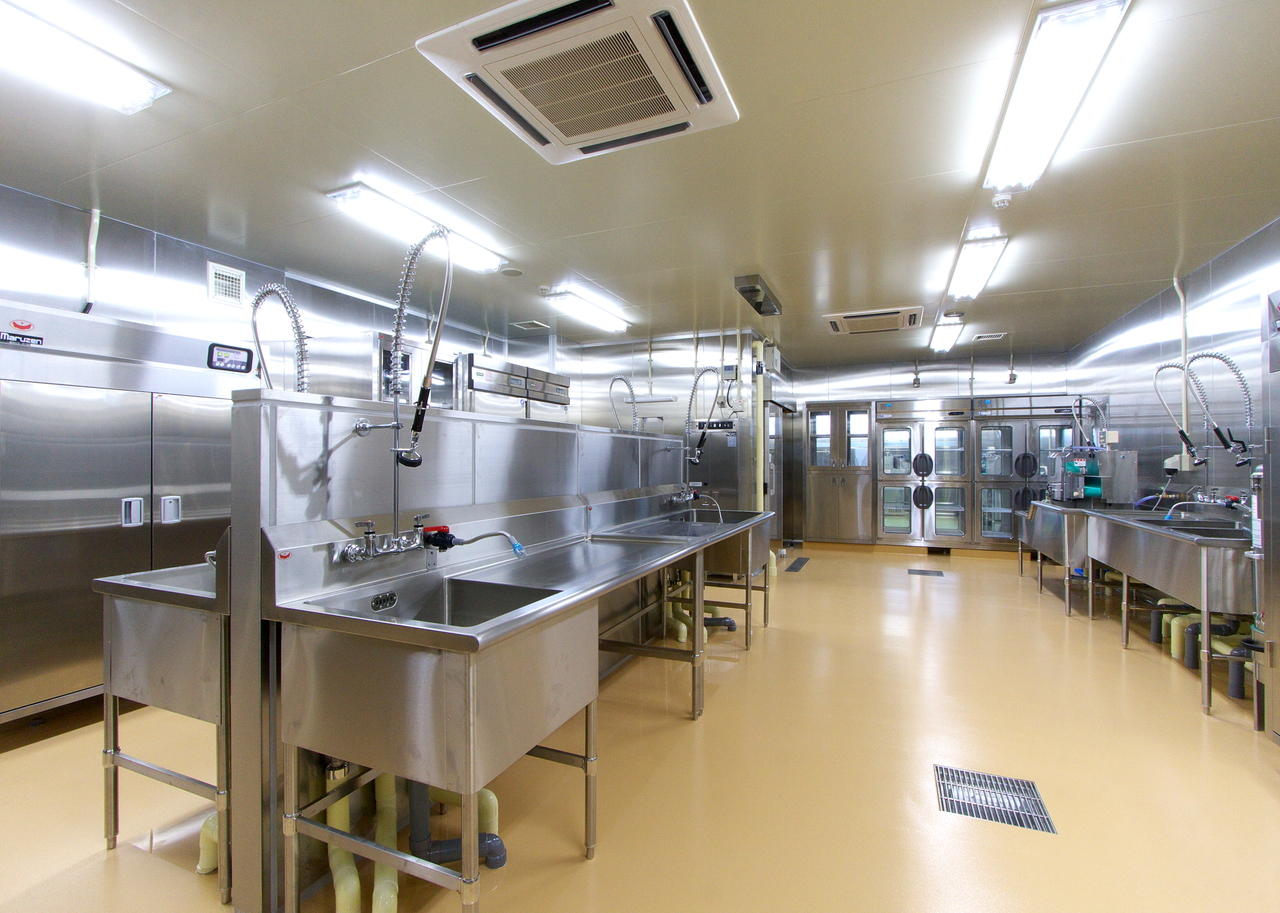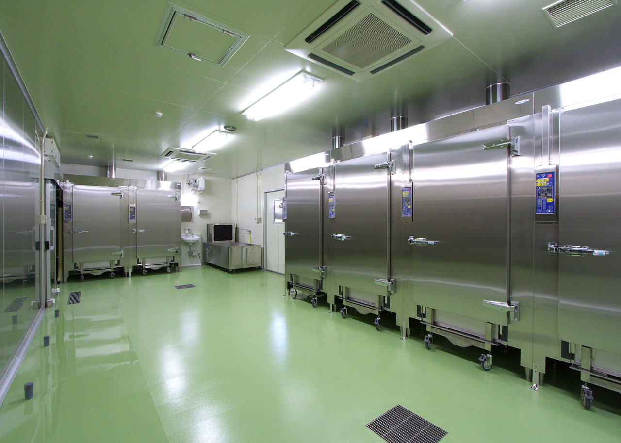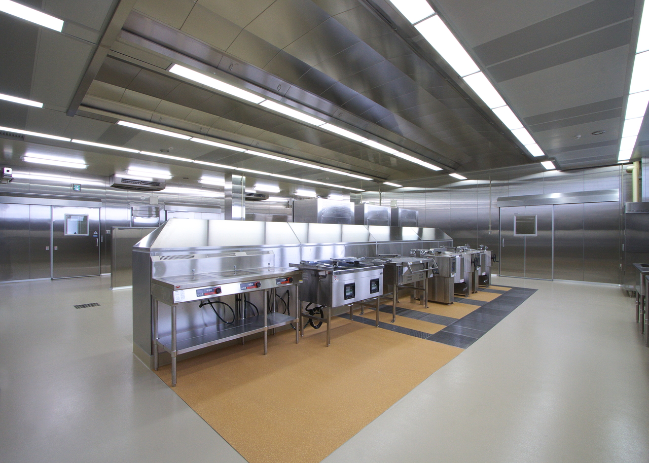 クックチルシステム(加熱調理をした食品を、急速冷却、そして喫食時間に合わせて再加熱し提供する調理システム)を採用しており、調理済み食品を安全かつ大量に確保し、日常の食事を安定的に提供しています。病院、福祉施設を対象としたクックチル方式の工場は国内でも数は少なく、先進事例に携わらせていただく機会となりました。