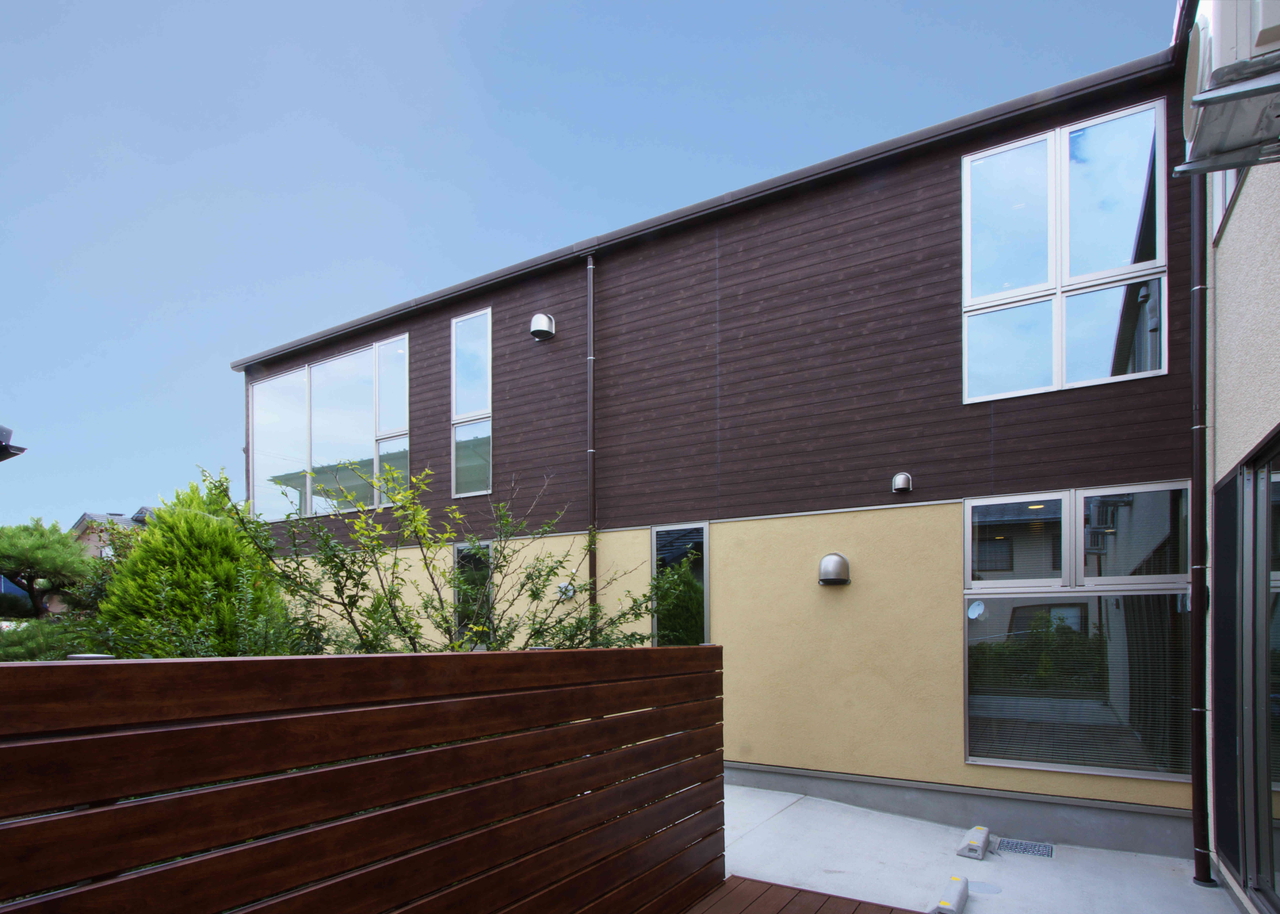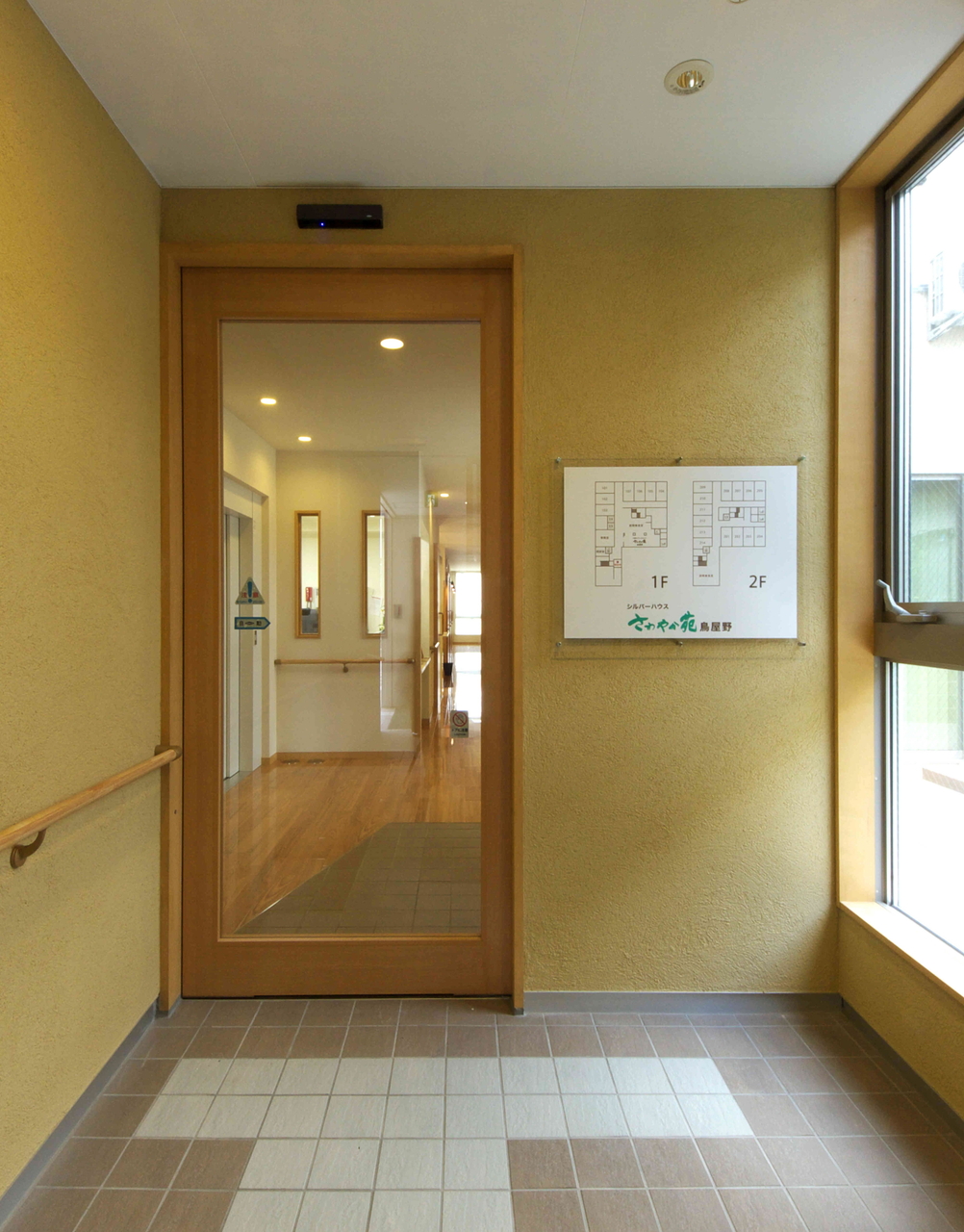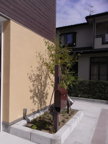 外壁は2階を木目調、目線が近い1階部分は黄土色の自然素材の塗り壁とし、温かみのある色彩、材質を選択しました。入口近くのポストと脇に植えたシャラの木は、利用者の方々の帰りを優しく迎え入れるようしつらえており、外観の表情を豊かにしています。
