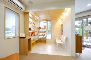 薬局内は着かず離れずの程よい距離感の待合室に、ゆっくりと商品を見ることができる物販コーナー、座りながらゆっくりと話をすることができるスペースももちろん確保されています。