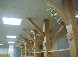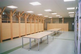 作業室1の外側を廻る廊下は、森の道を現しています。光る石や、パンを目印にしながら二人が歩く森です。この森を通り抜けて作業室2のパン工房へ行くわけです。