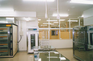 パン工房はヘンゼルとグレーテルが魔女をやっつけて、宝物を見つける勝利の象徴となります。現代では中に最新の機器が並んでいますが、入り口にレンガ風のタイルを使い、 パン焼きの釜や調理場をイメージしています。