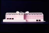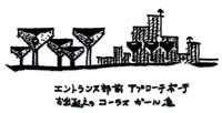 この地域全体の施設群への入り口道路から南面を見上げると11個のトリーブスが歓迎してくれる事でしょう。夫々のトリーブスは、光り輝く実を付けております。更に中央の立体型トリープスは夜になるとライトアップされることによって昼における『図と地』の逆転が起こる事に成り、楽しさをます仕掛けとして設けられております。――丁度家と家が軒を連ねて並んでいる様に。〔五軒長屋?〕