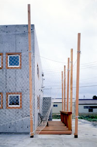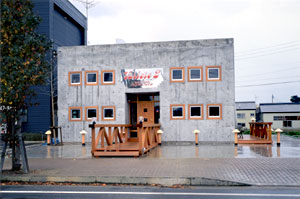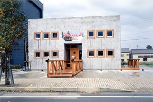 ハヤカワboxは 2本の大きな丸太が支えます。 コンクリートの打ちはなしと ムクの木材がおりなす massiveな空間。