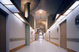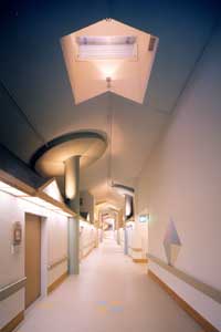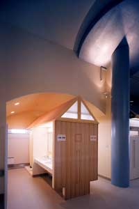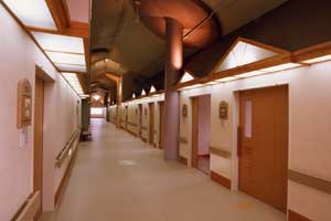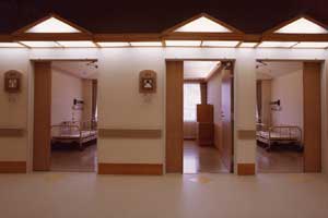 病室は夫々の家であり、ポーチ灯は個室間を演出