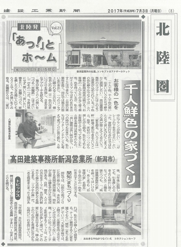 建設工業新聞の取材を受け、7/3付けの記事に新潟営業所を掲載いただきました。