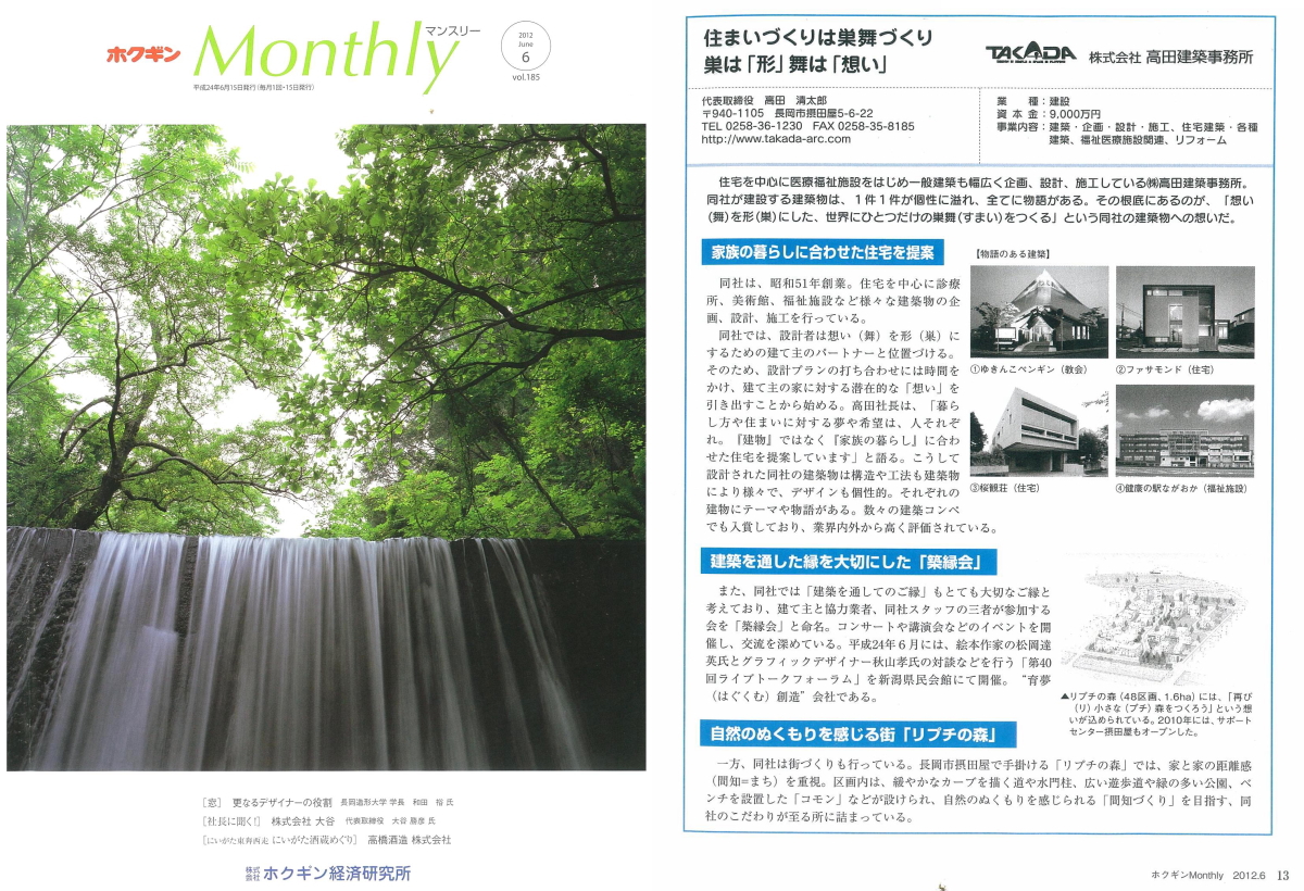 北越銀行グループ「ホクギン経済研究所」が発行している「ホクギンマンスリー」2012年6月号に 当社の紹介記事が掲載されました。