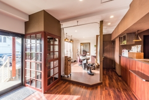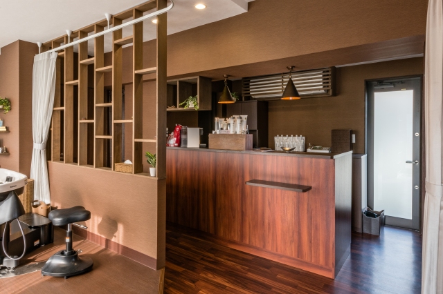1階部分は髪質改善の施術をメインにお客様により寛いでいただけるよう、落ち着いた空間に。