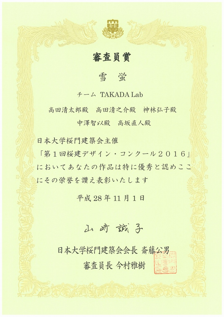 第1回桜建デザイン・コンクール2016にて「審査委員賞」受賞