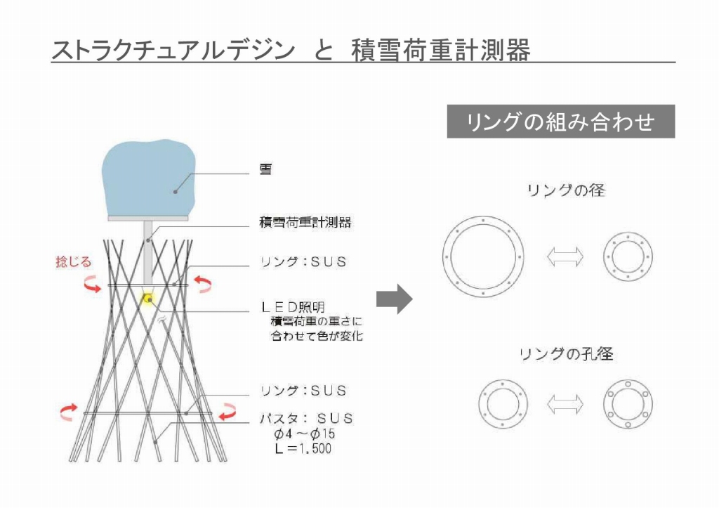 「雪蛍」は単に雪下ろし時期を知らせるセンサーではなく、ストラクチャー(強)+アート(美)+ファンクション(用)