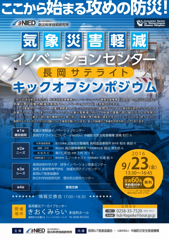 「気象災害軽減イノベーションセンター長岡サテライト キックオフシンポジウム」ご案内