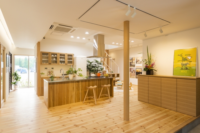 1Fは、キッチンスタジアムを中心に扇形に打ち合わせエリアを配置。