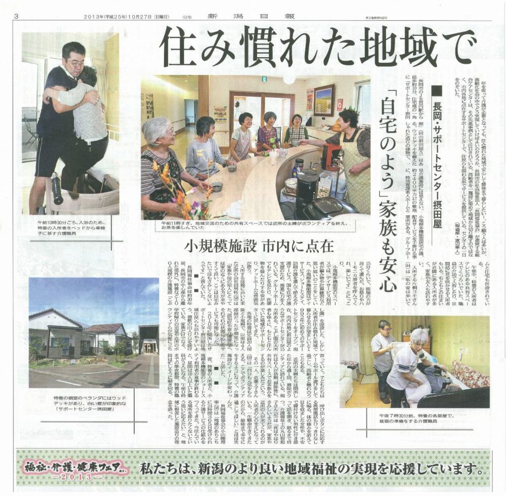 10/27(日)の新潟日報朝刊の「福祉・介護・健康フェア2013特集」に