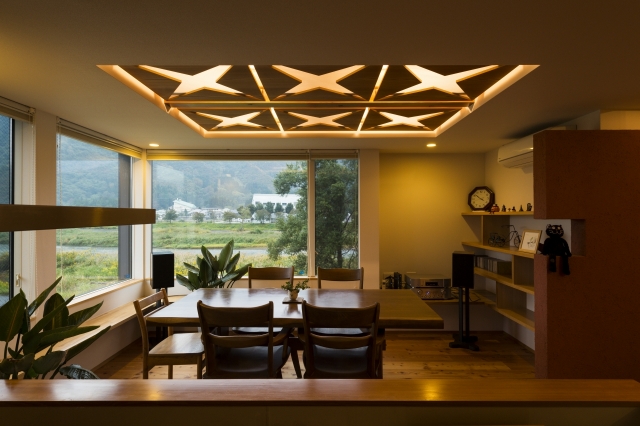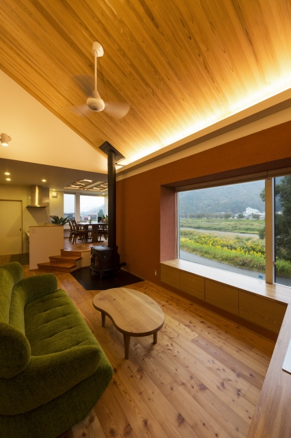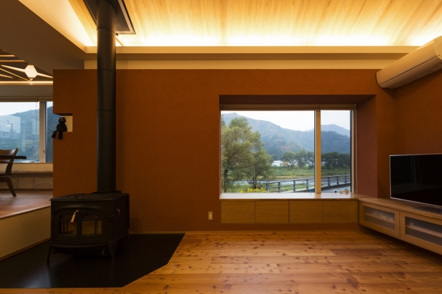 この景色を満喫できることと、雪の多い地域を考えて2階リビングを考えました。