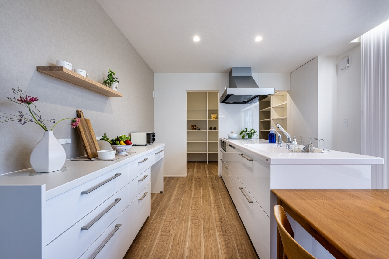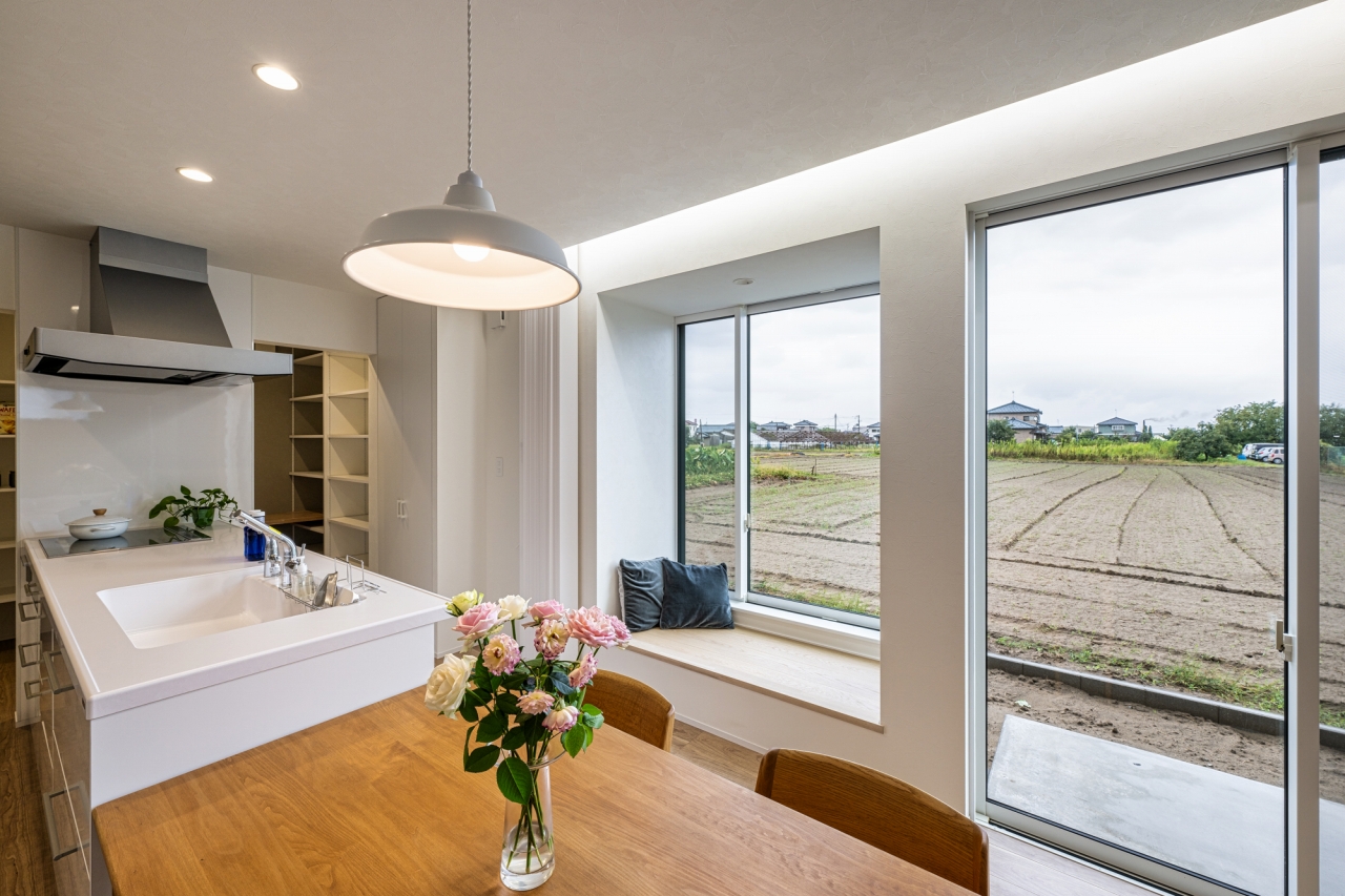 朝日をたっぷり受け止めながら朝食を作るキッチン。