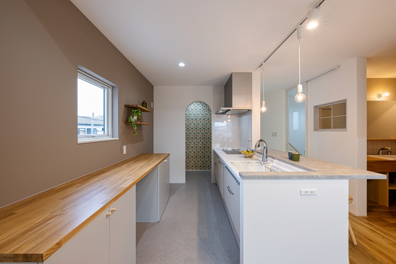 R壁とウィリアムモリスを組み合わせたパントリー。