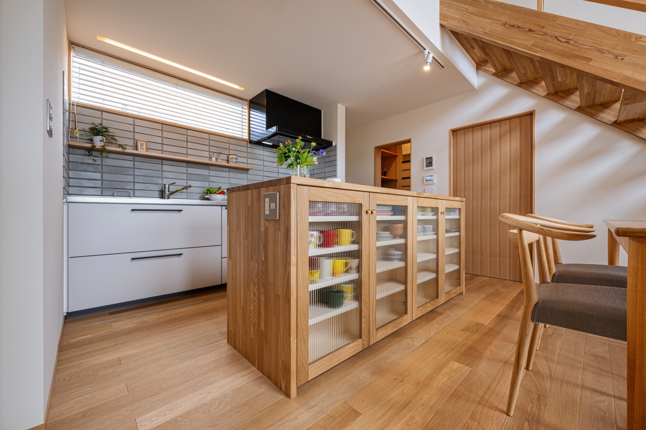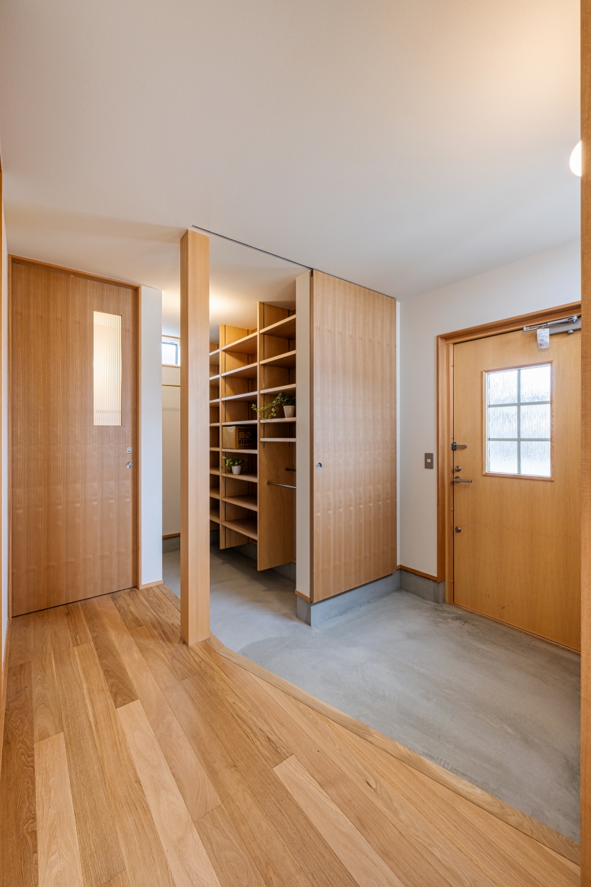 土間繋がりの収納は、吊戸で間仕切りが可能。