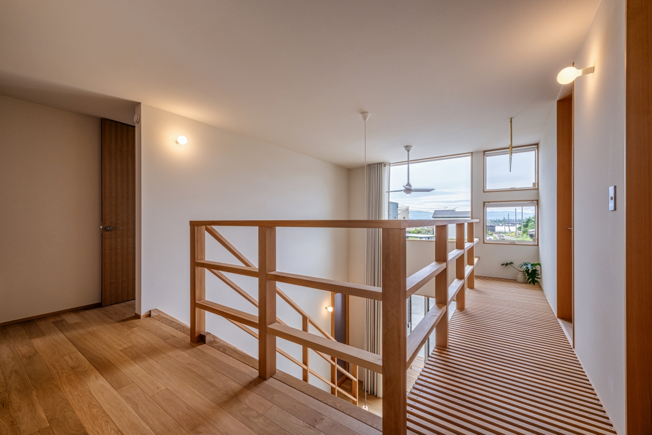 丁寧に造られた格子の通路は、風と光を1Fに届ける。