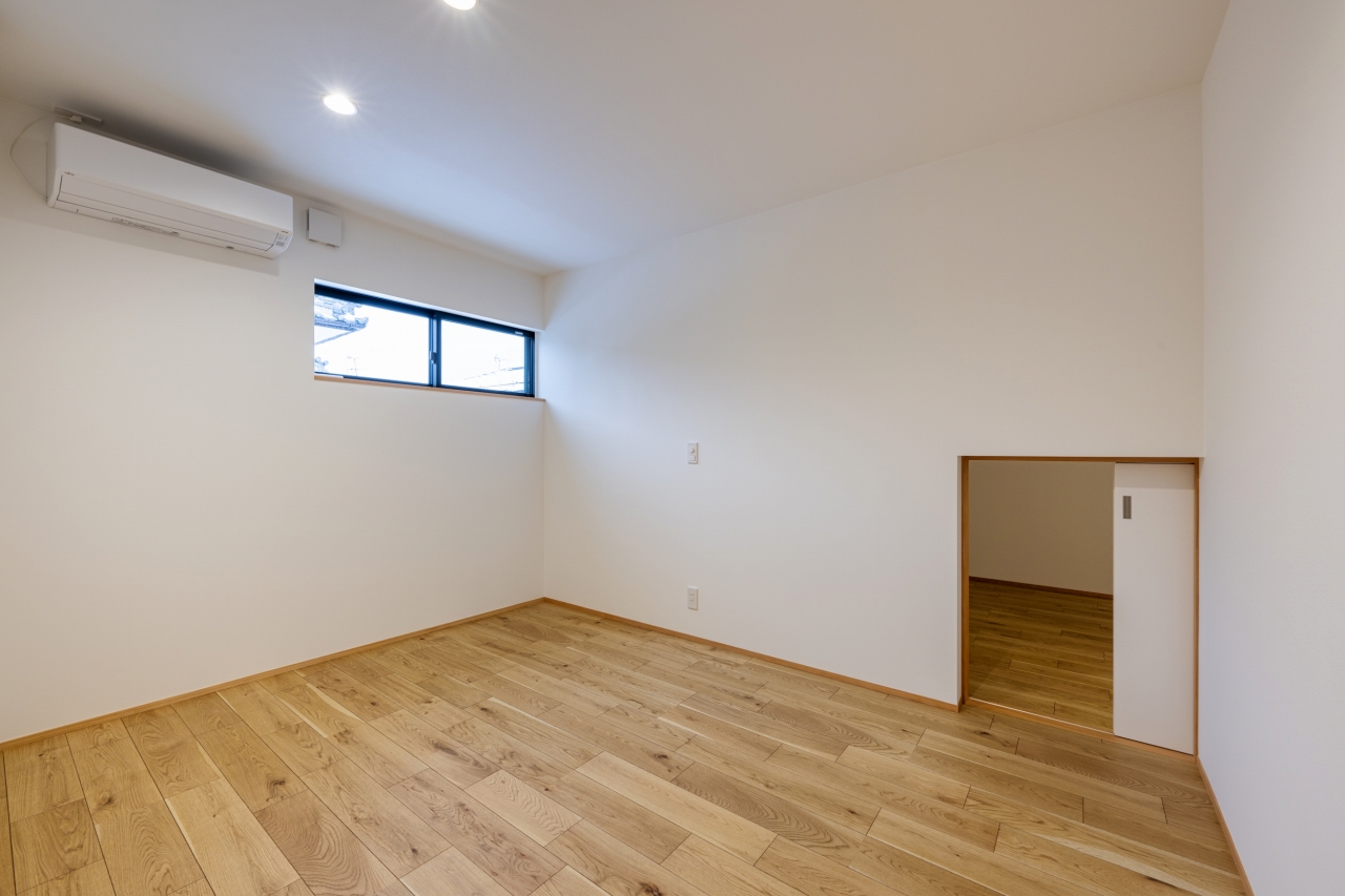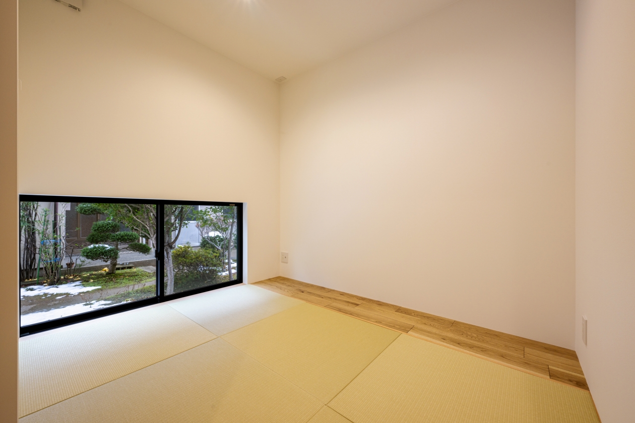 地窓で重心を低く抑えた和室。来客時は客間としても使える。