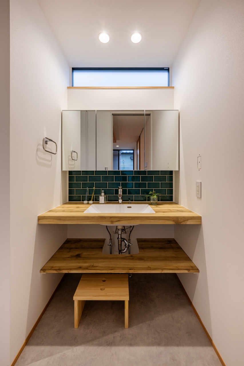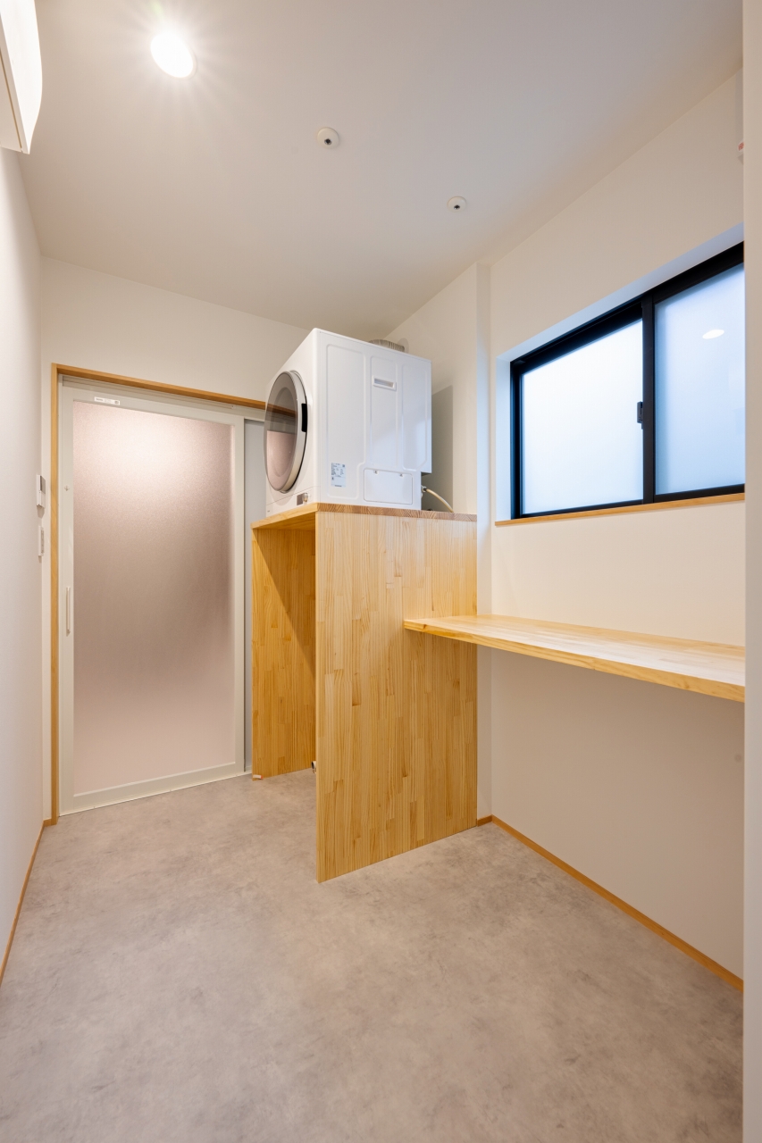 造作の乾太くん専用架台。隣のカウンターで畳む作業も楽々。