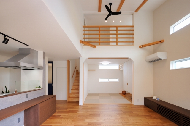 コトコト良い匂いがしてくるオープンキッチン 「夜ごはんはなんだろう?」 ゴロンとくつろぐ畳スペース 「ちょっとお昼寝…ウトウト」 ワイワイ笑い声が聞こえる秘密基地みたいなロフト 「今日は何して遊んでるかな?」