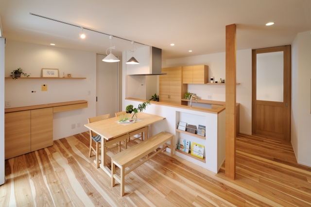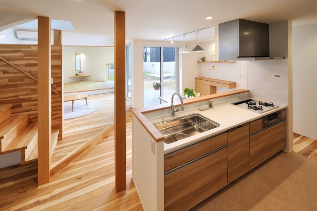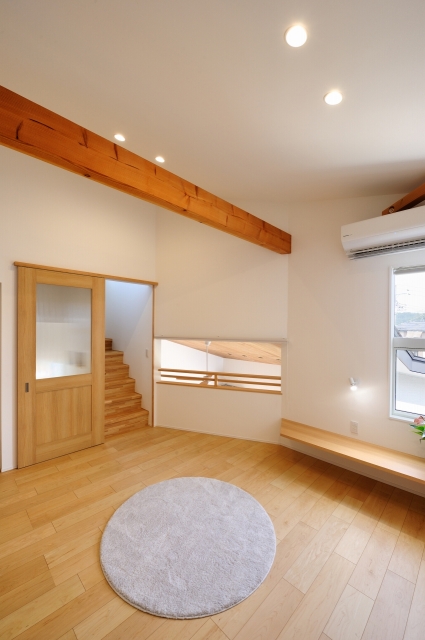 木のぬくもり ステップする床 斜めのライン ブランコもできるフリースペースに ぐるぐる走り回れる回遊動線 豊かな住空間が 子ども達の学びとなる