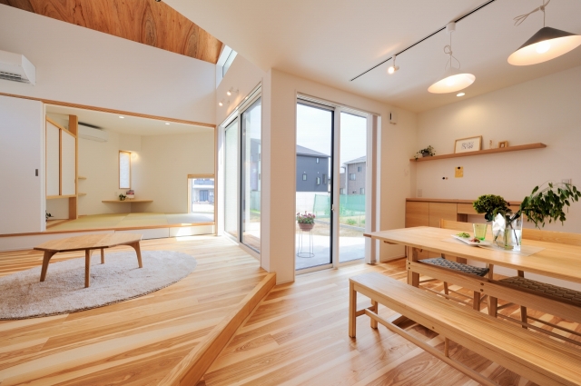 庭を眺めながら ゆったりと寛ぐ一時も 家族団欒の一時も 一人の時間も みんなの時間も 大らかな空間が包んでくれる
