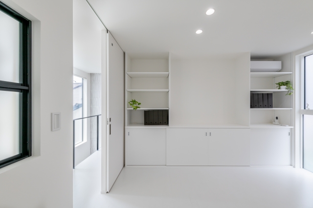 真っ白な壁が光を反射し、室内全体が輝く。