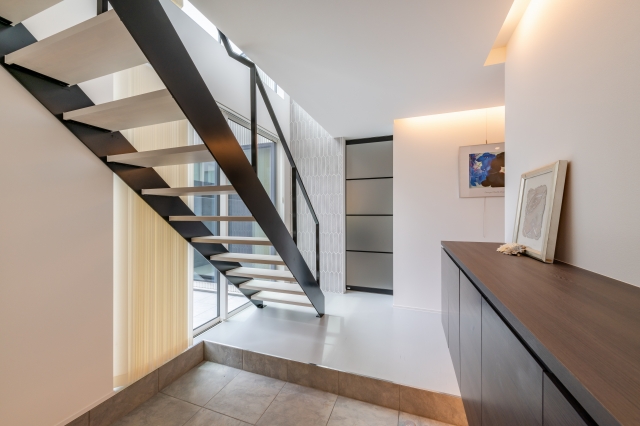 デザインそのものの構成美を新鮮な感覚で主張する シンプルモダンな家。
