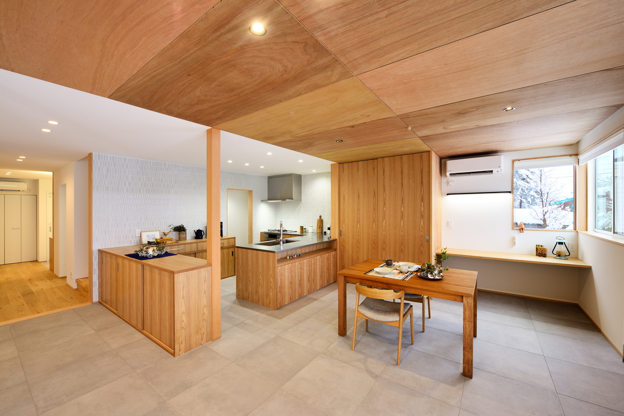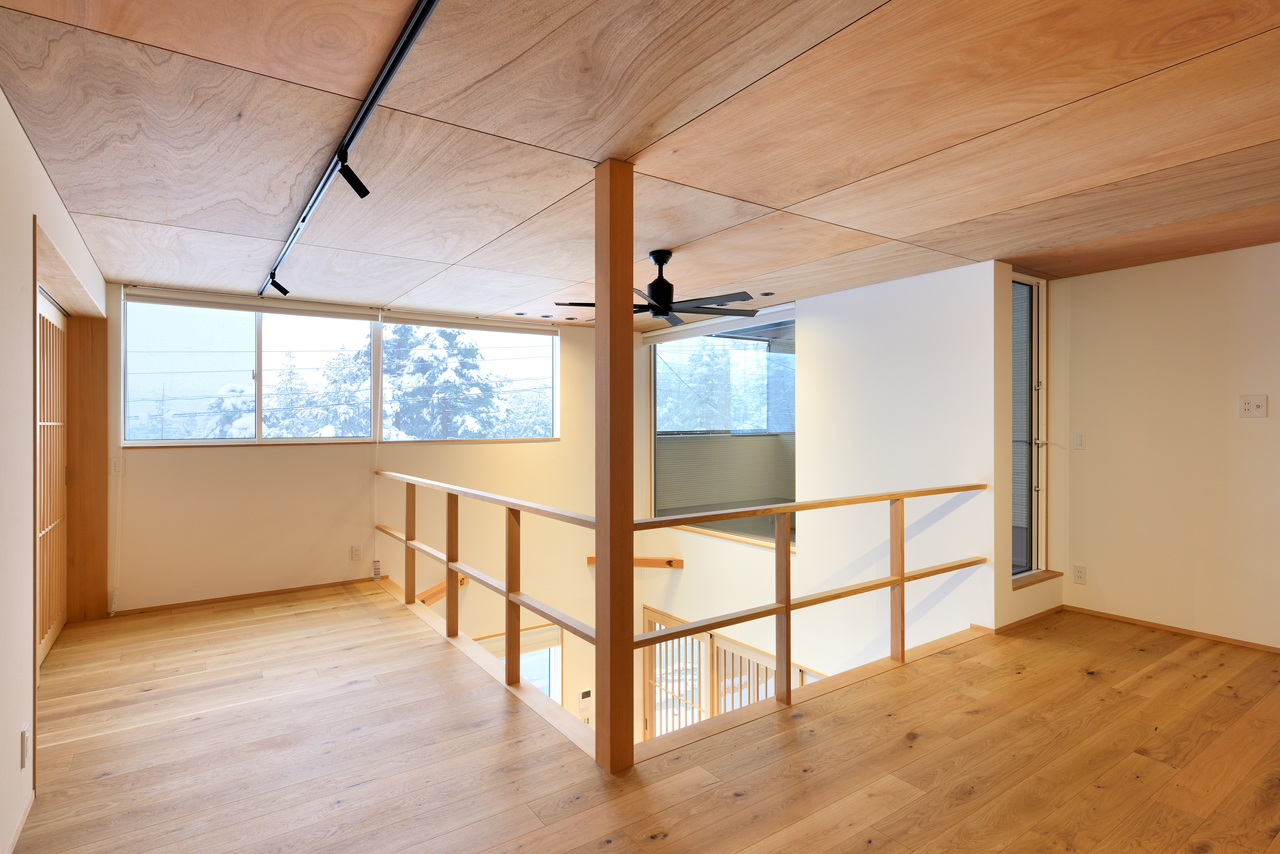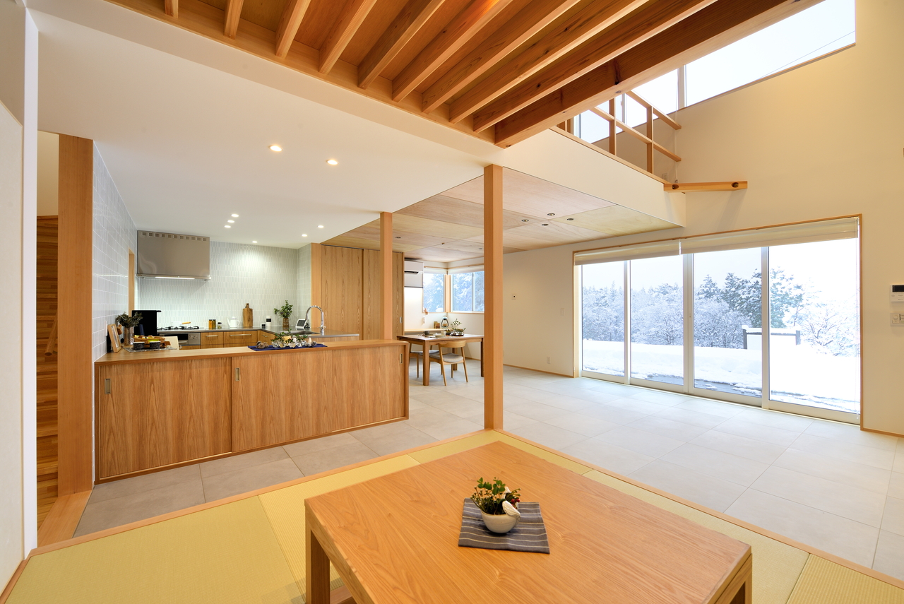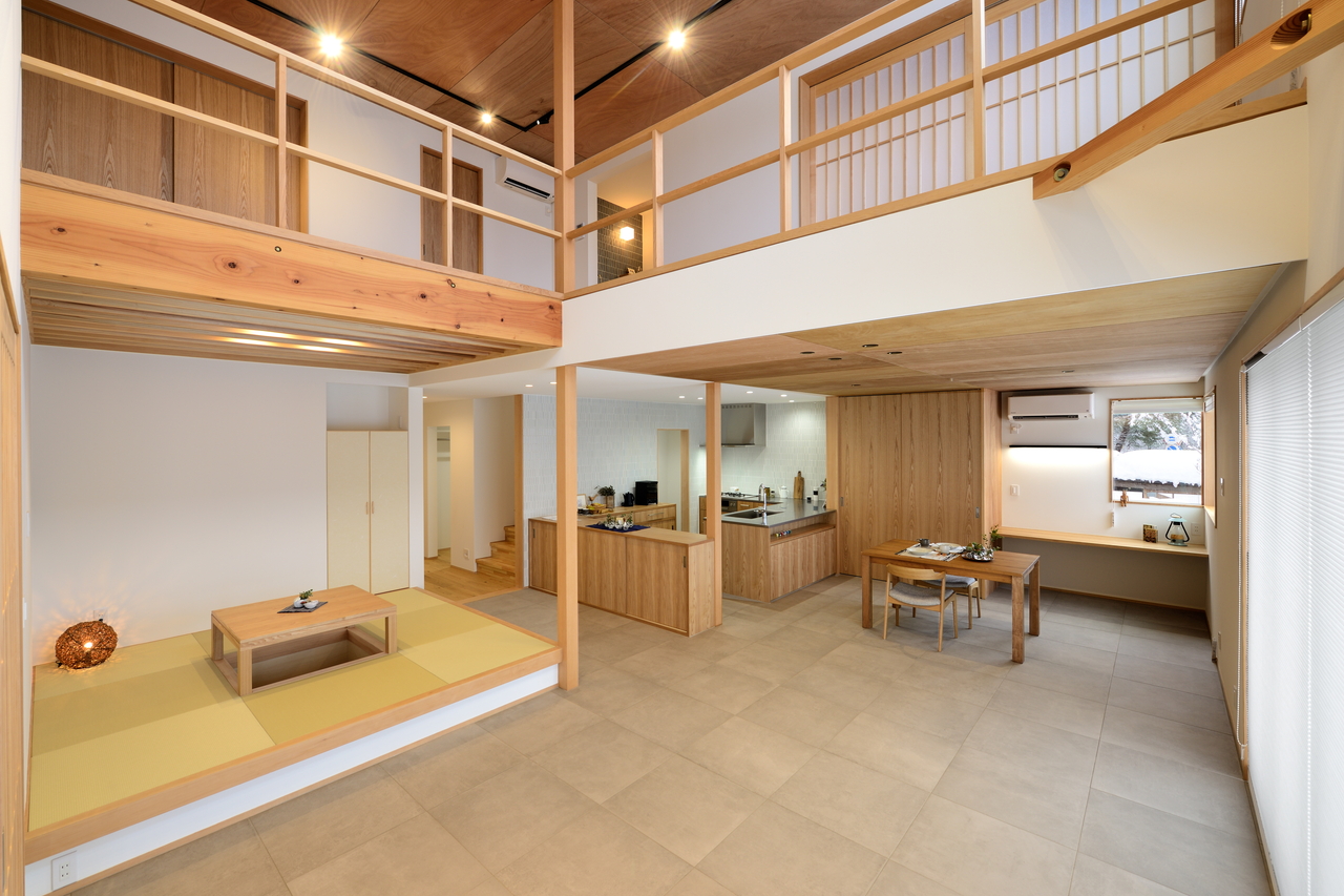 上を見上げれば1階と2階が溶け込む吹き抜けから