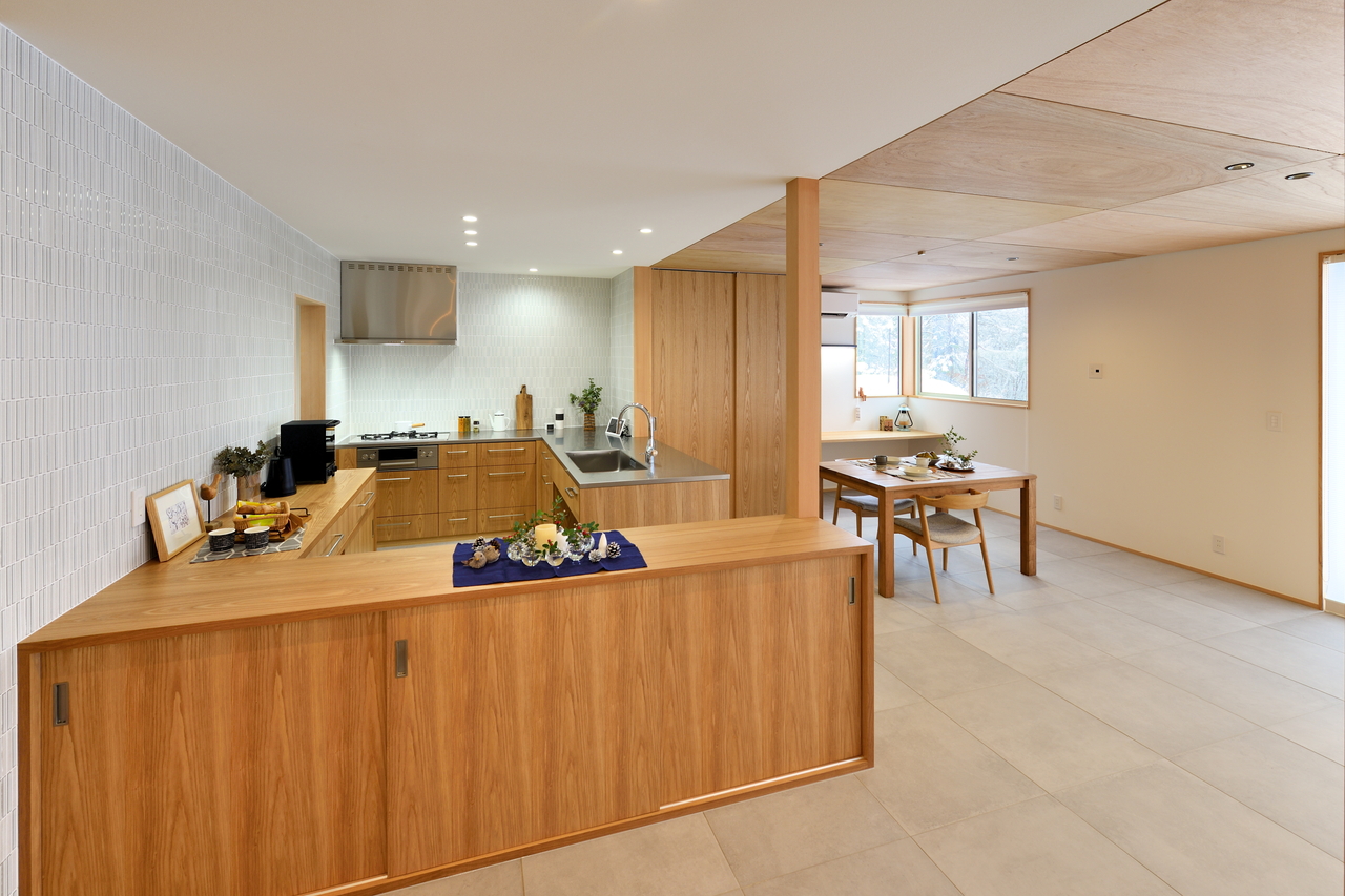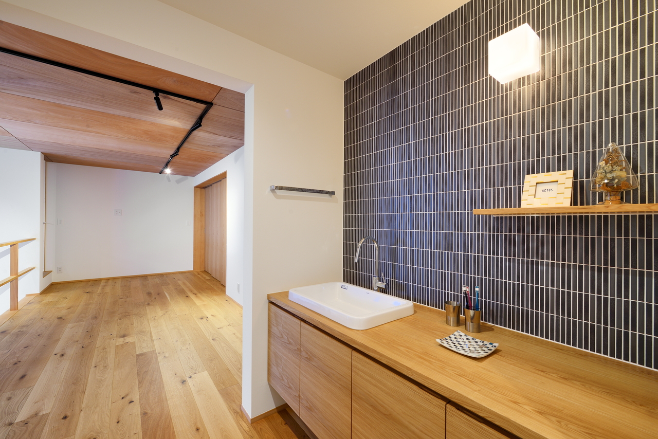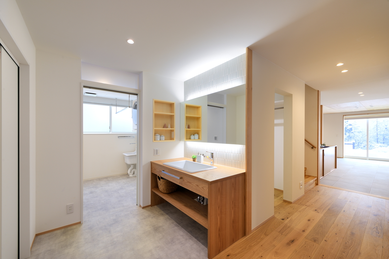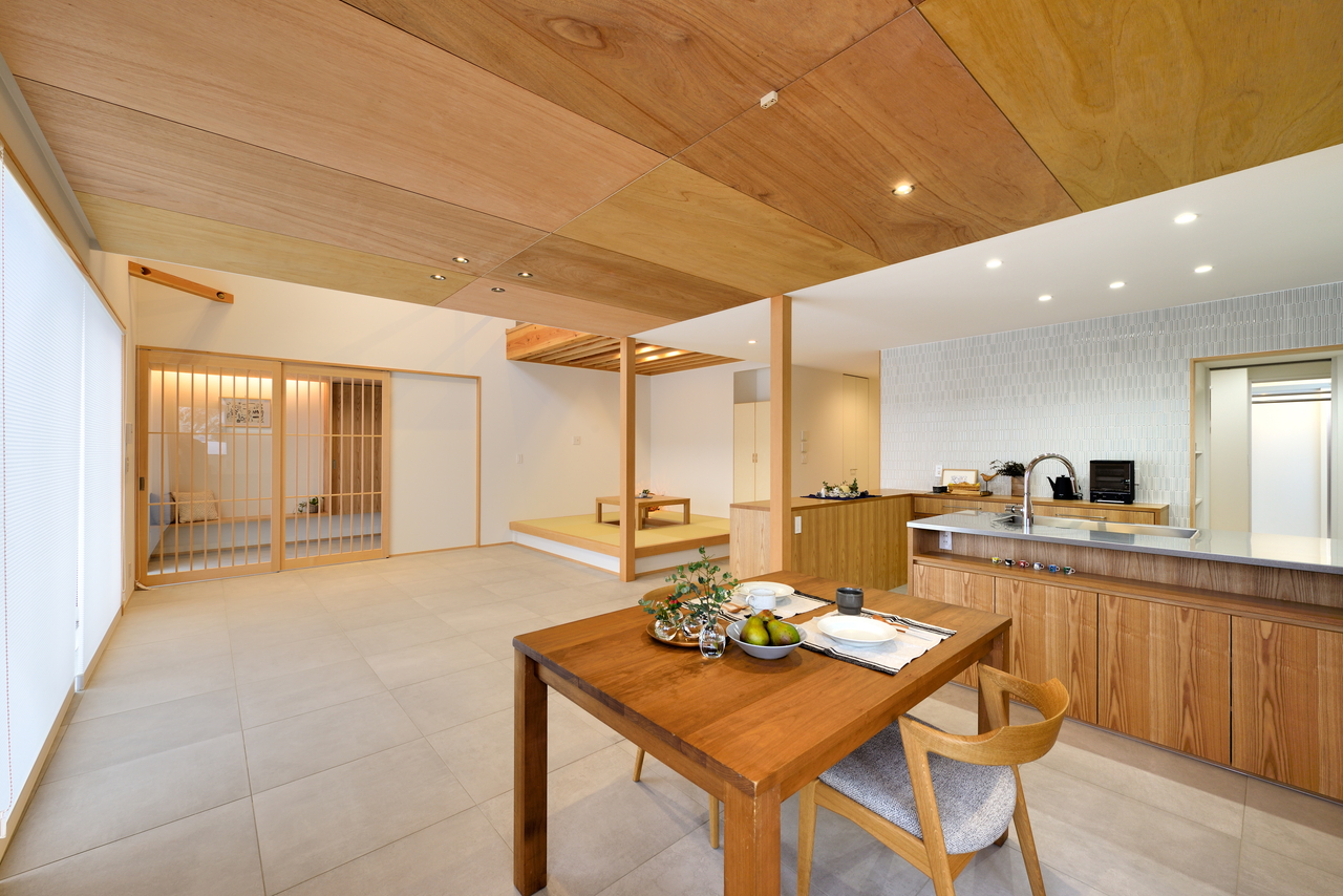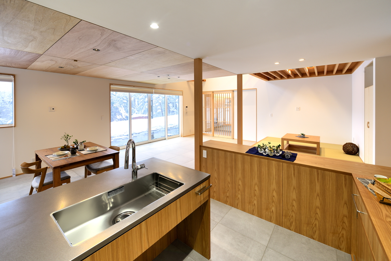 上を見上げれば1階と2階が溶け込む吹き抜けから