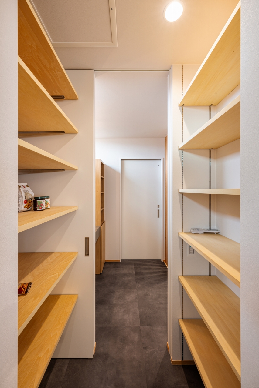 パントリーから洗面室へつながる家事楽動線。