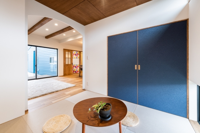 最後は、一番お気に入りのコバルトブルーで家族を包み込みます