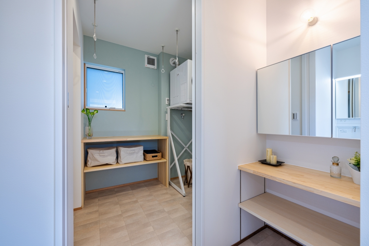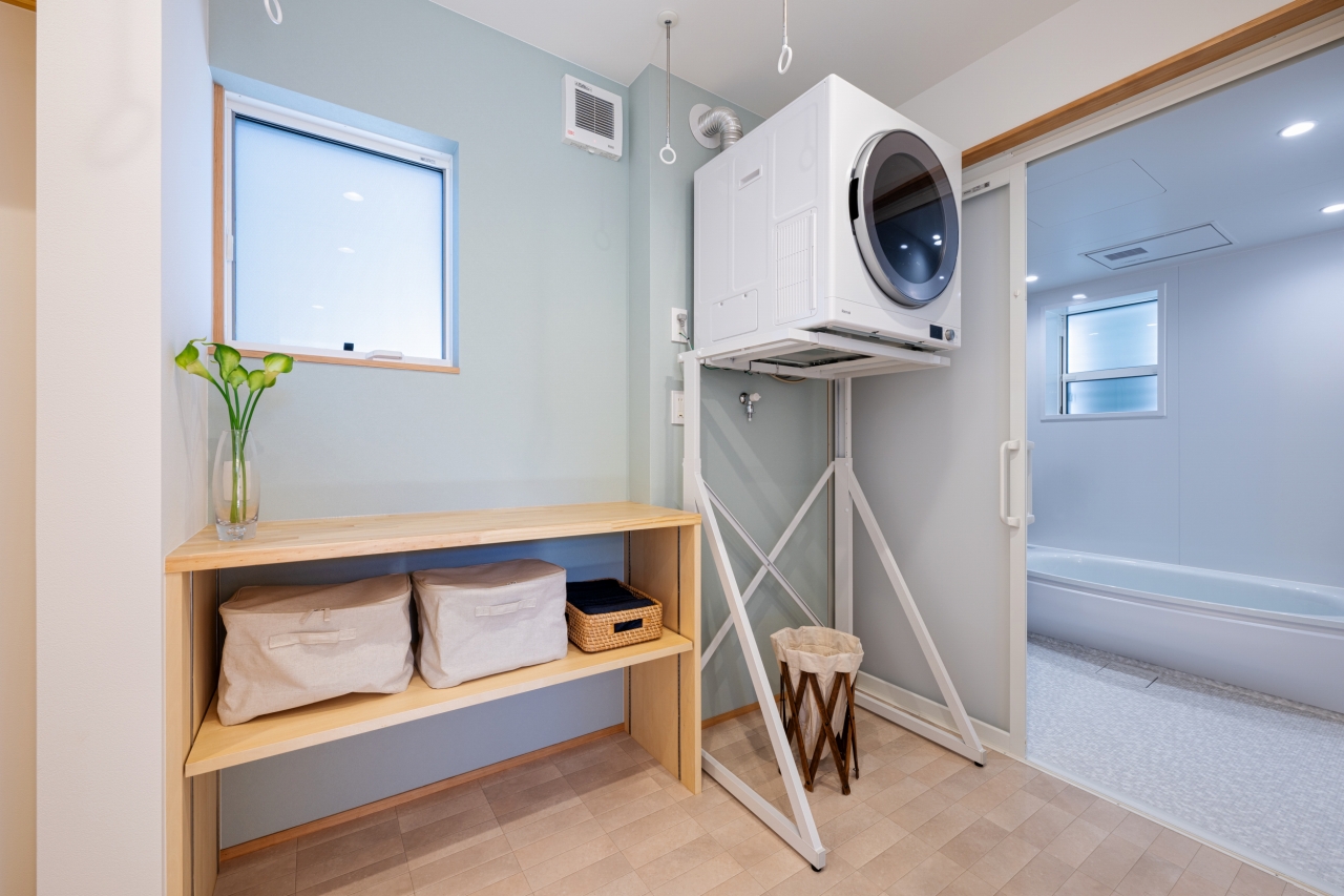 乾太くんと作業用カウンターで充実のランドリースペース。