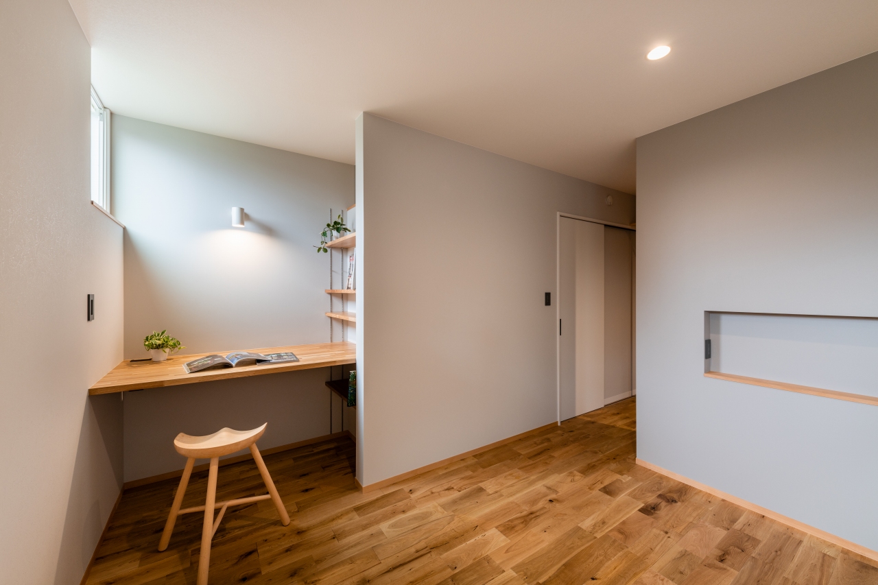 寝室には書斎コーナーを設けた