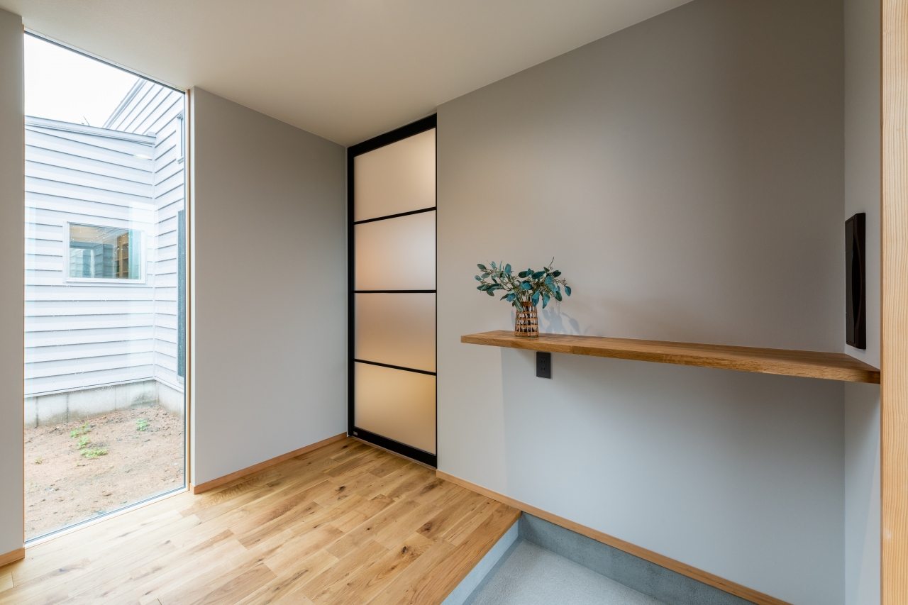 中庭へと視線が抜ける玄関