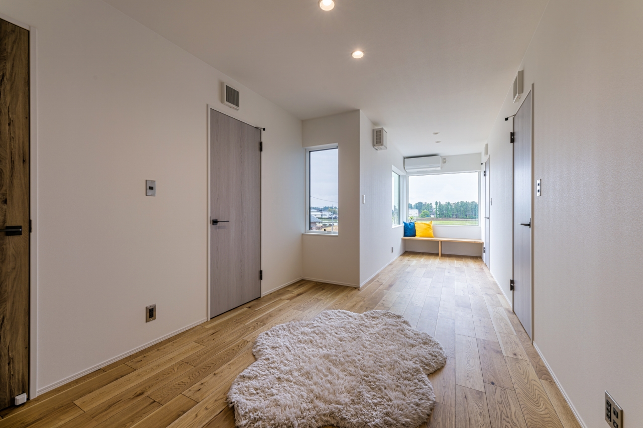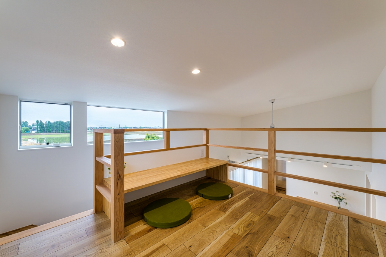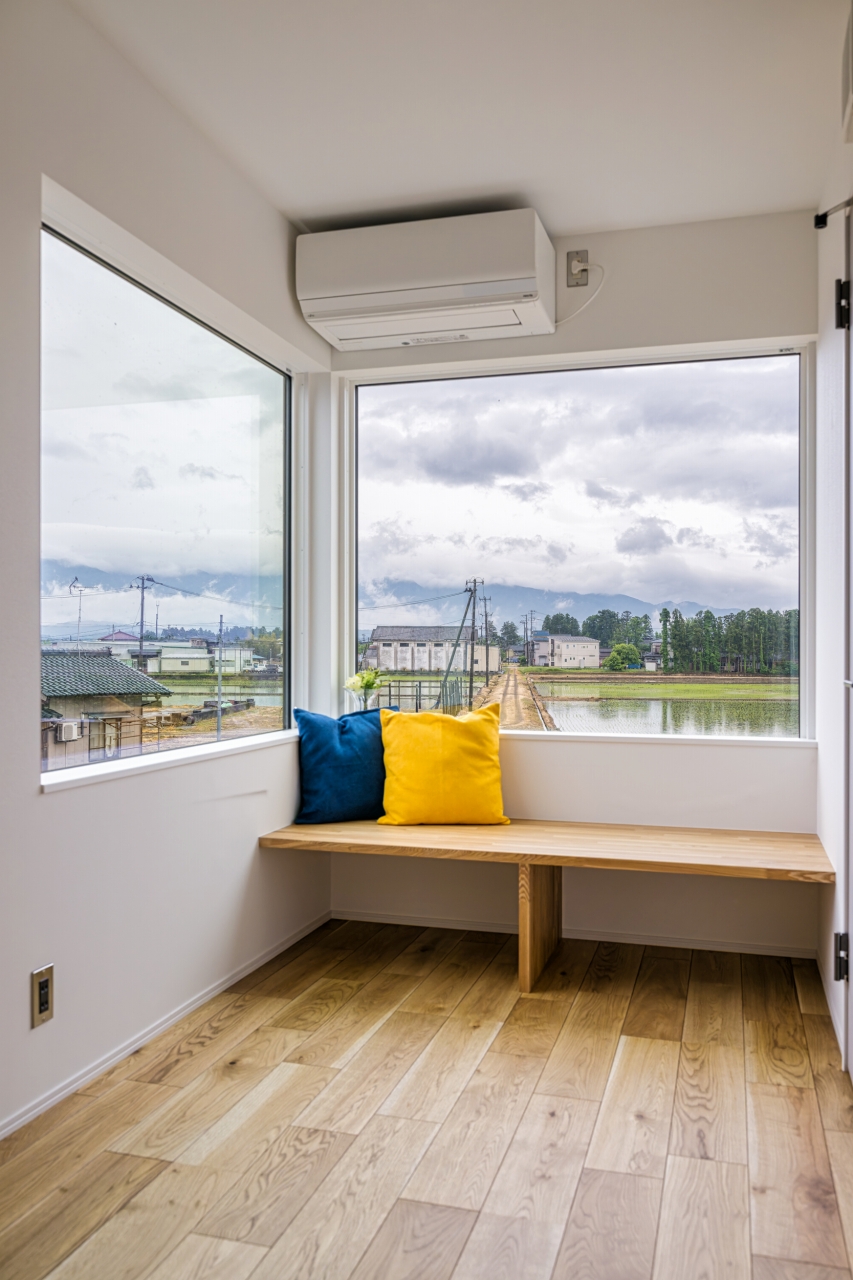 南へ向けた掃き出しサッシからは田園風景を眺めることができ、夏には花火鑑賞も。