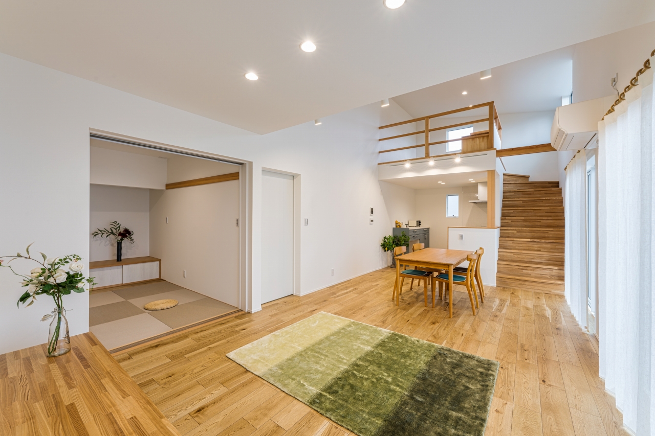 キッチン上のロフトやリビングとつながる和室など居場所がたくさんのLDK。