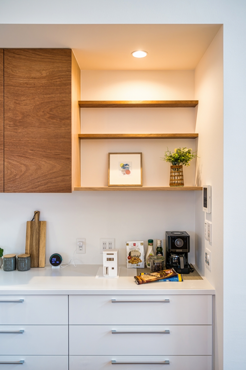 LDK入口の正面に位置する飾り棚。季節物や絵画などを飾る。