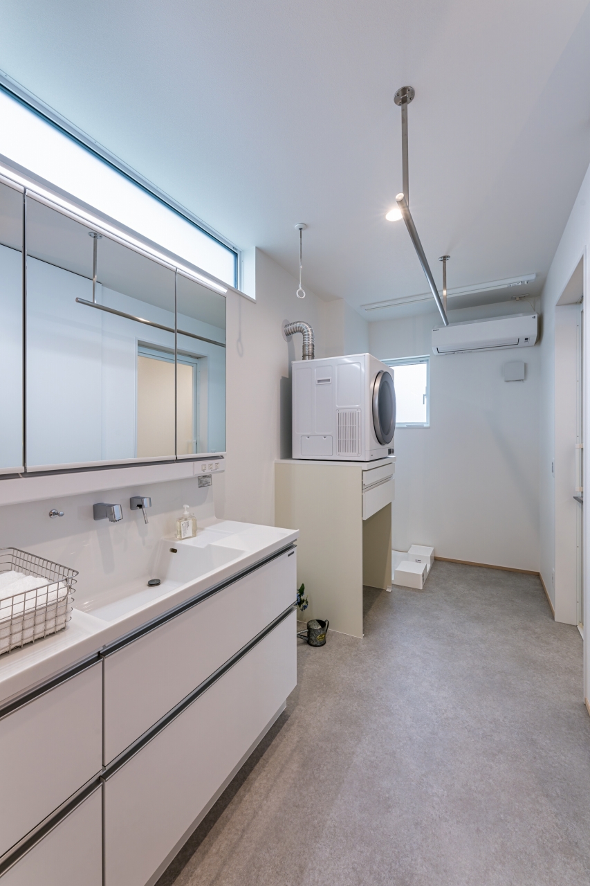 乾太くんとエアコン完備の洗面脱衣室。どの季節でも快適空間に。