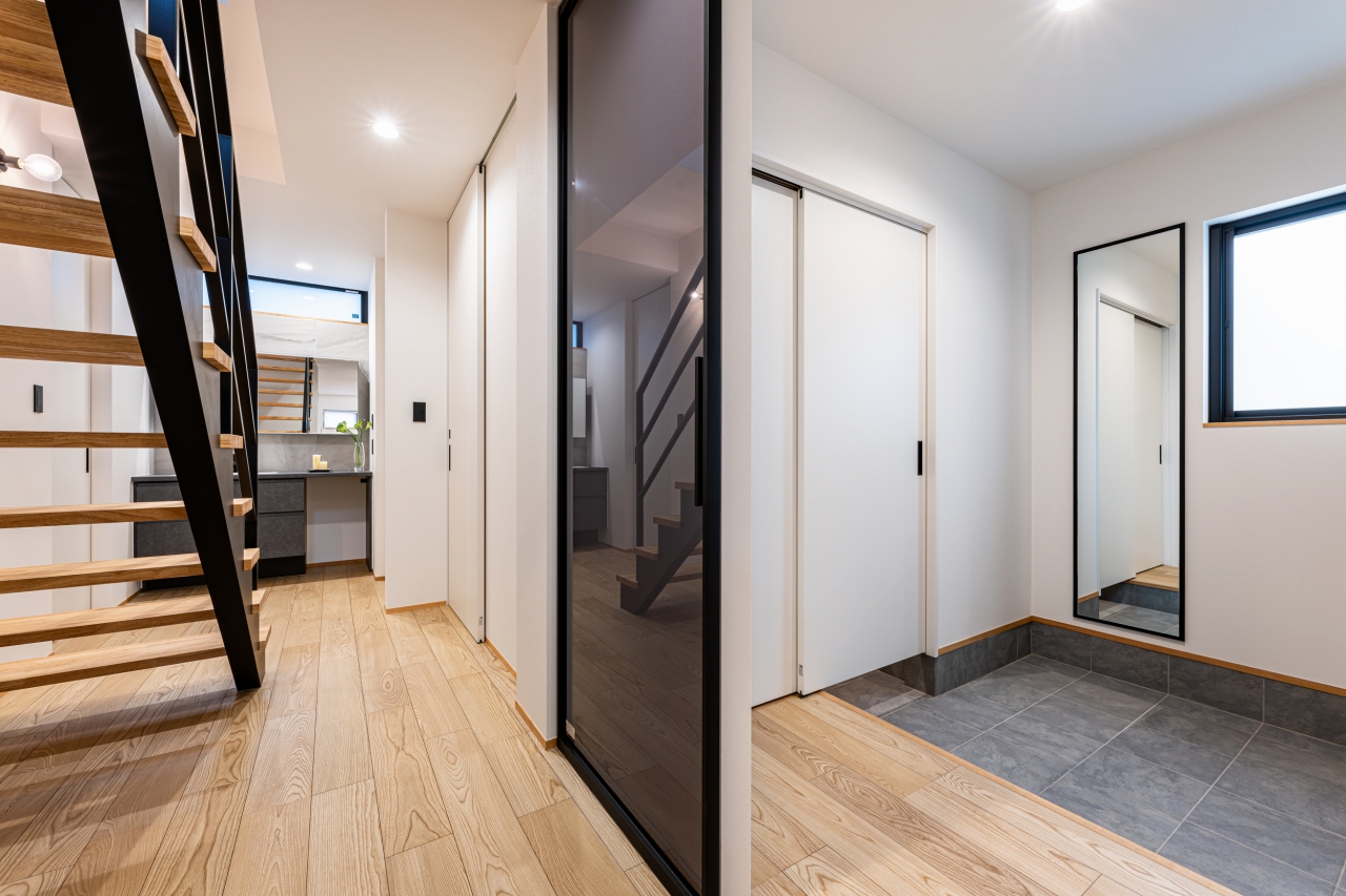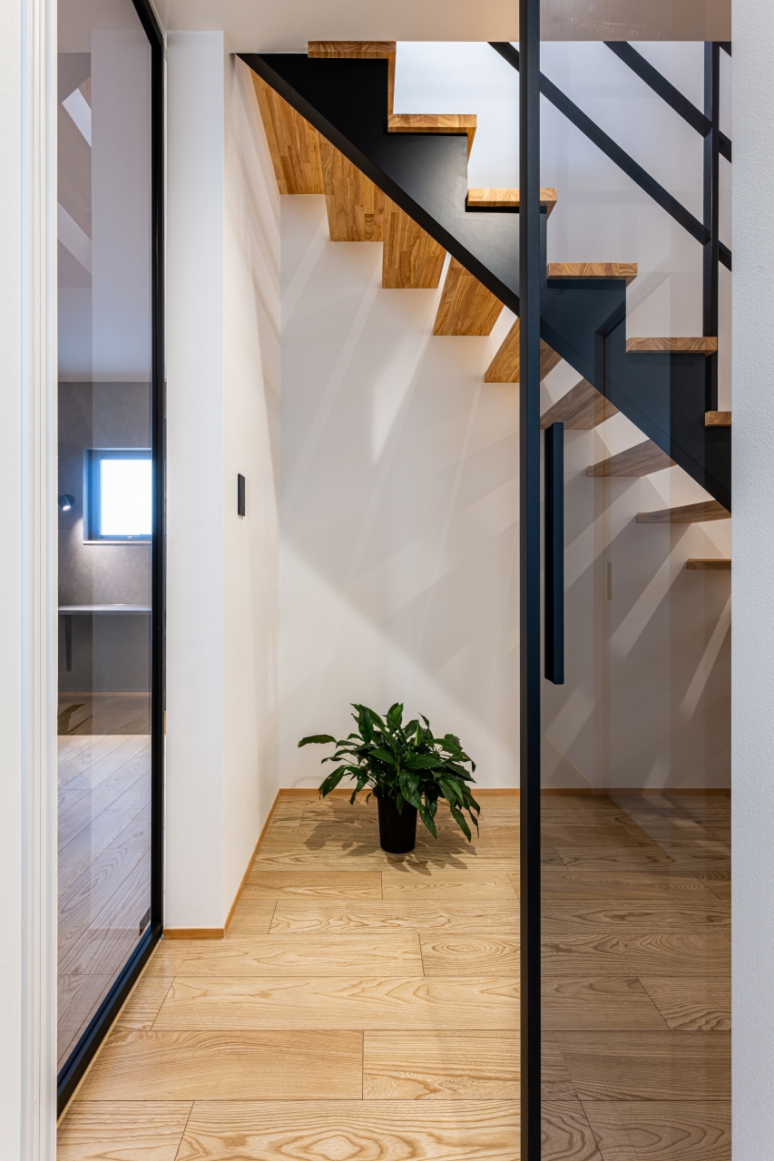玄関入ってすぐに、スタイリッシュな階段がお出迎え