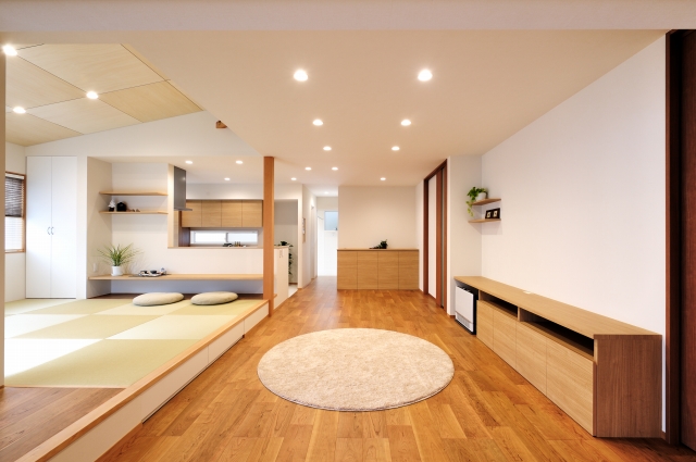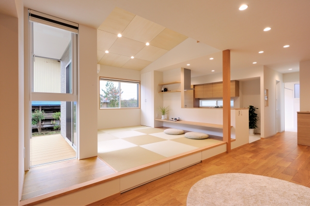 明るくて広々した小上がりの畳スペースは家の中心になる居場所