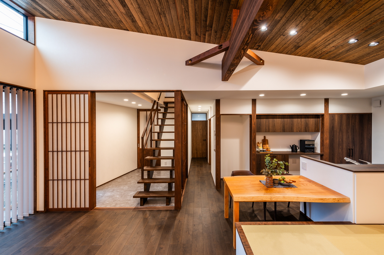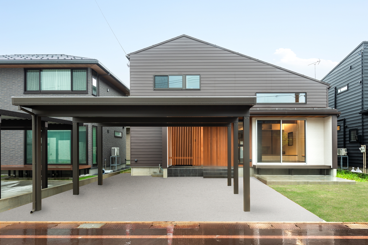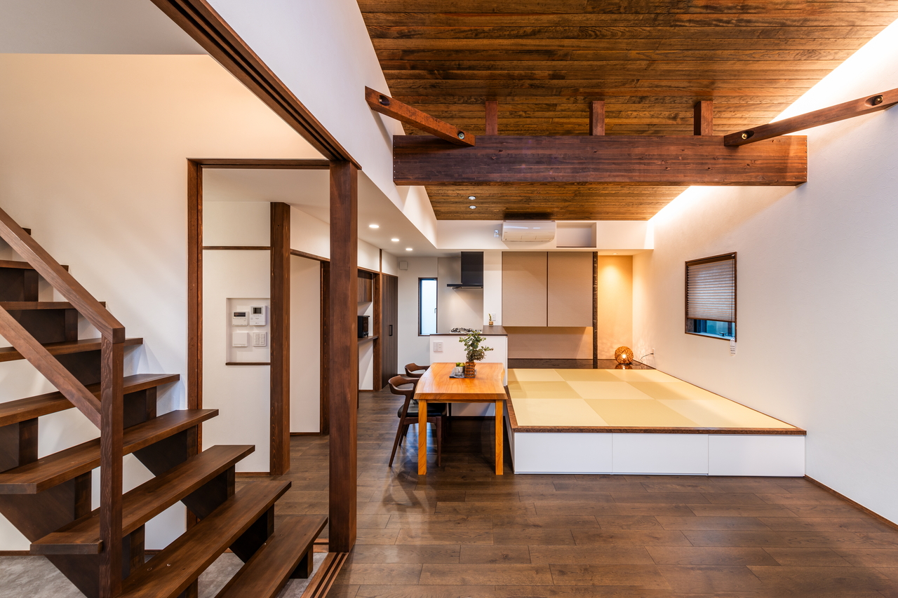 Point ・古民家のような構造現しの大空間 ・土間のように使えるインナーテラス ・”居場所”を散りばめた間取り