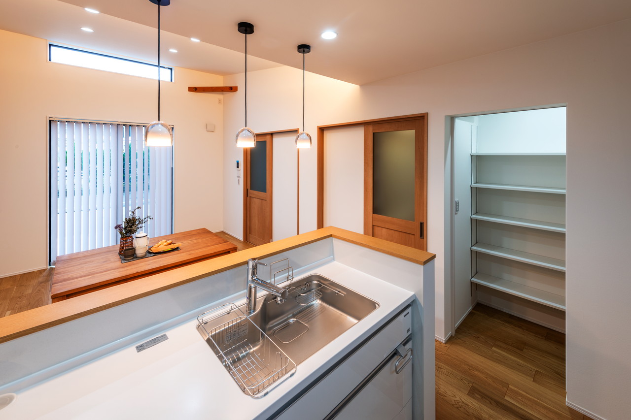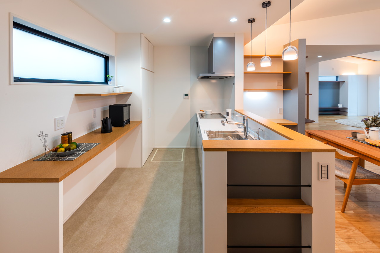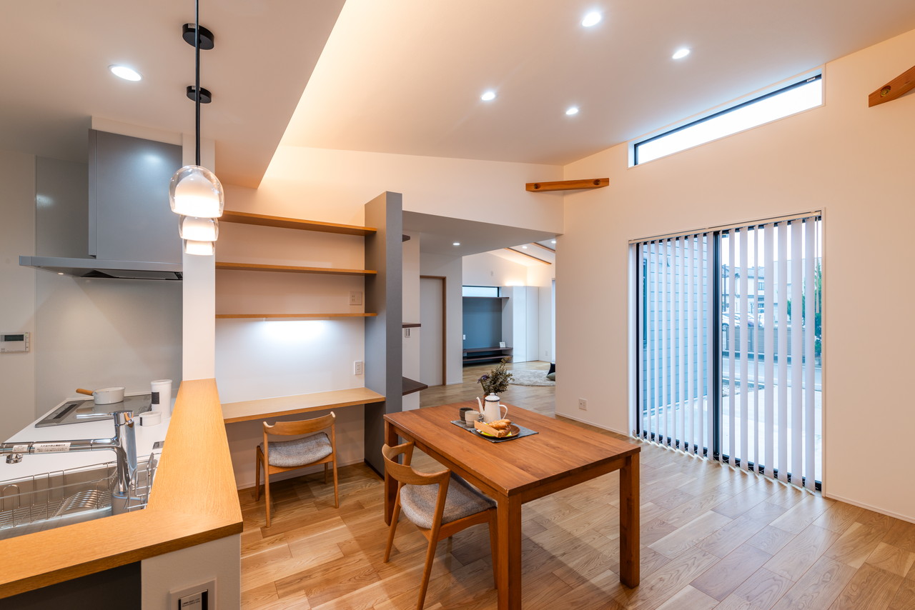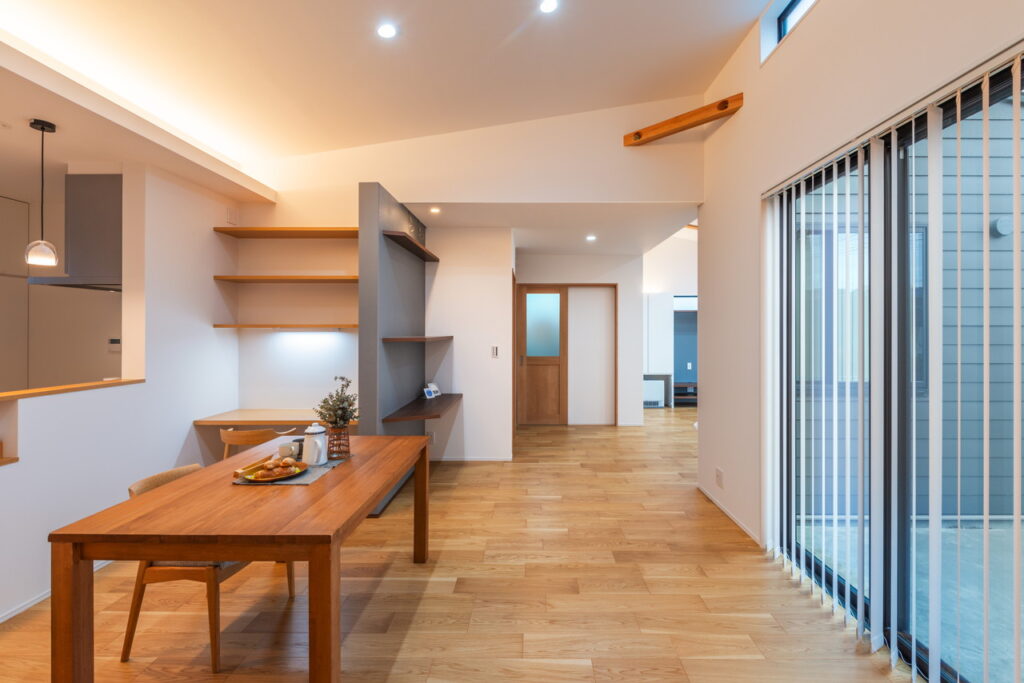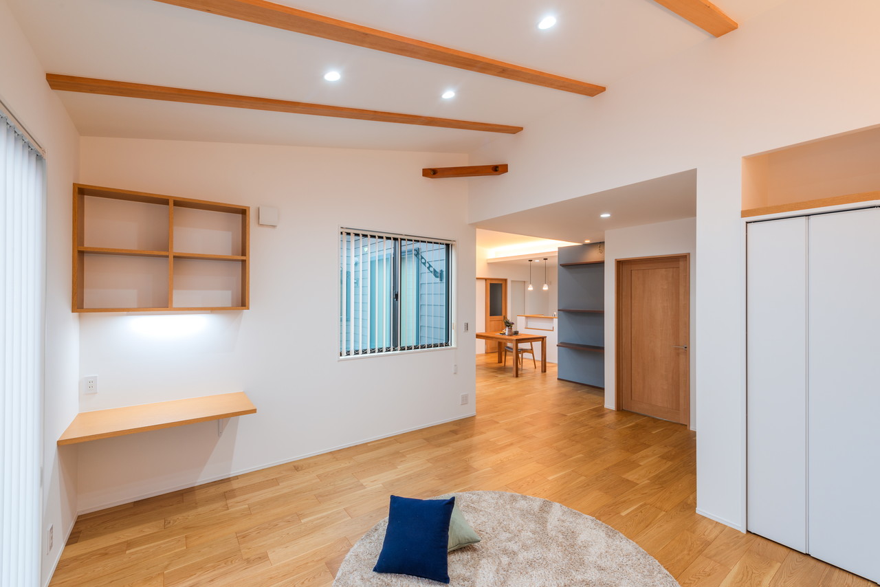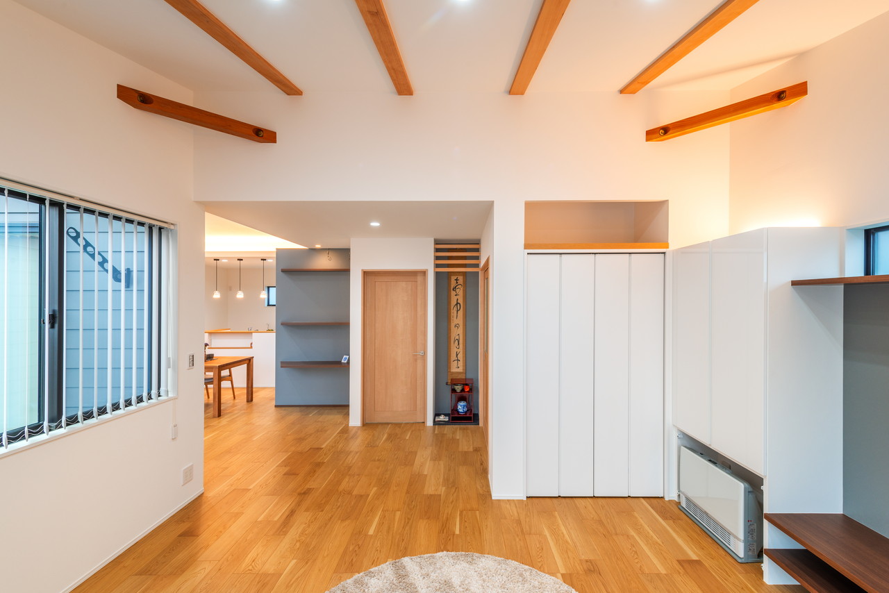 ・オークの床材や梁を表しにしたナチュラルウッドな内装