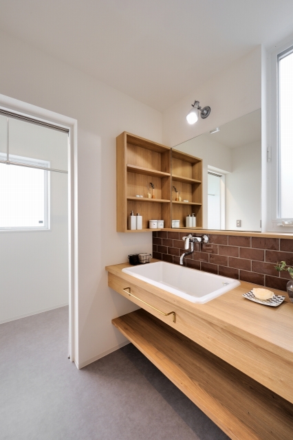 タイルや木をふんだんに使ったこだわりのキッチン