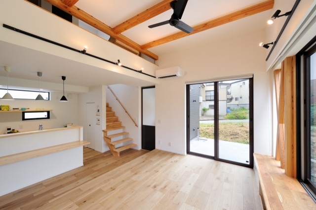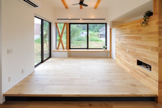 1段小上がりのステージリビング