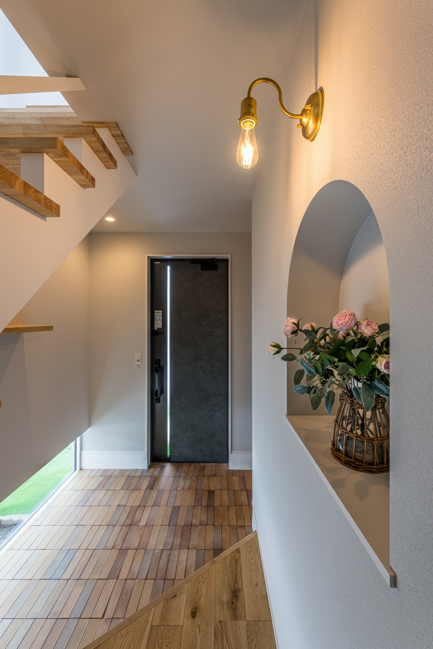 アールのニッチの飾り棚がお出迎え