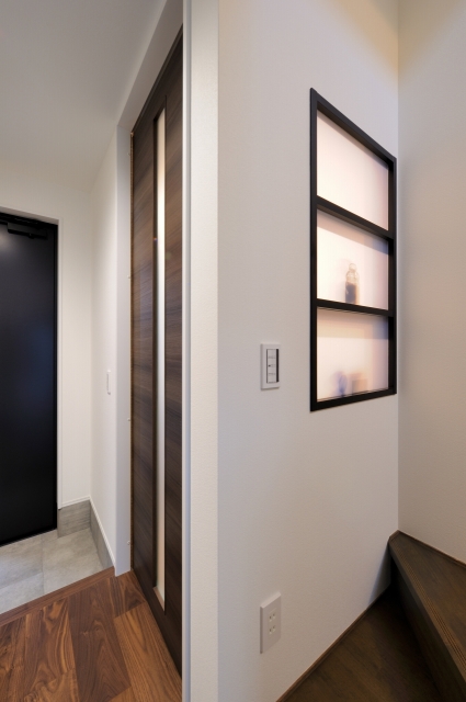 コンクリートを模した どこか無機質な壁面に 優しい光が溶け込んでいく たどり着いたのは インダストリアルな住まい