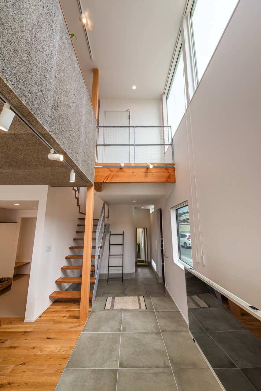 “玄関”という枠は捨て、リビングと一体となった大空間